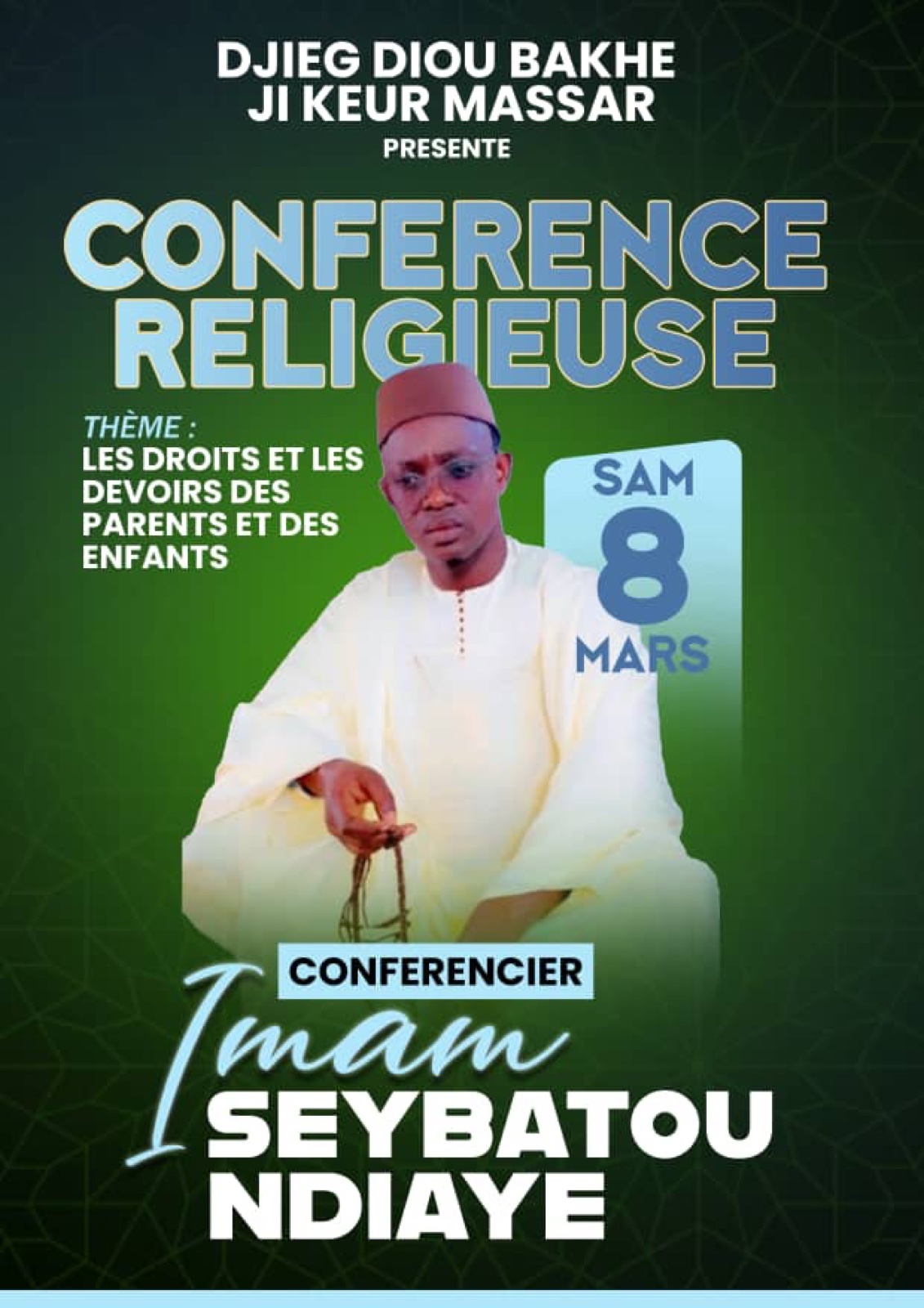 Fiqh malikite (jurisprudence), hadith, sîra du Prophète ﷺ, akhlâq (éthique), tawhîd (théologie). Lecture des textes classiques selon la méthode de la Zawiya de Tivaouane.